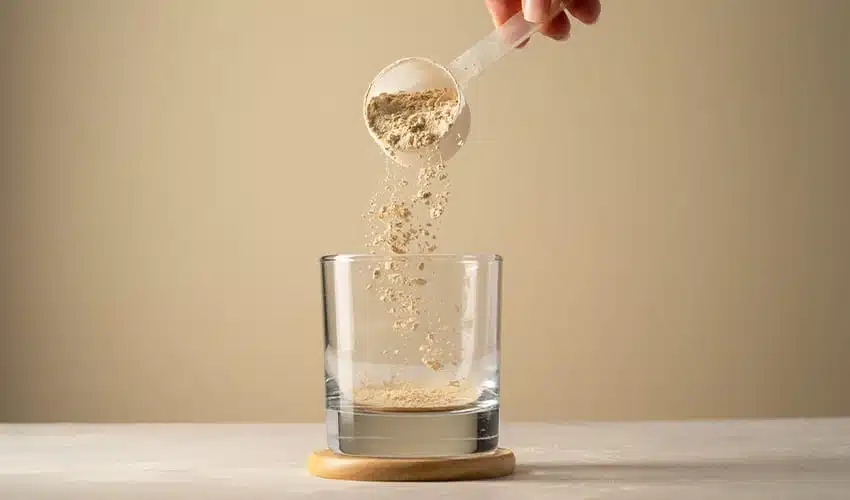 Skonis yra neutralus ir švelnus — be pridėtinių saldiklių, kvapų ar dažiklių. Tik švari, funkcionali mityba. Išmaišykite vandenyje, sultyse arba įtraukite į rytinį kokteilį. Be kapsulių, be poskonio likučio.