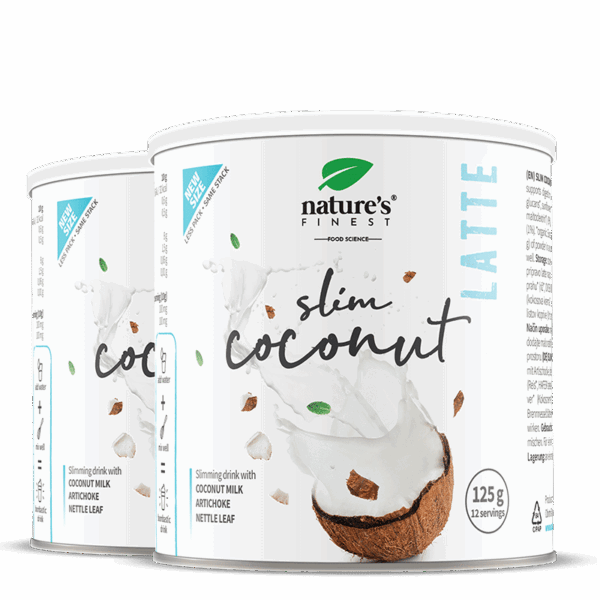 Coconut Slim Latte turi kokosų gėrimą milteliuose, kad suteiktų skanų tropinį skonį ir artichoką, kuris skatina svorio metimą².