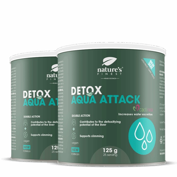 Detox Aqua Attack sudėtyje yra patentuota sudedamoji dalis, Cactinea™, kuri skatina vandens išskyrimą, ir artišokų ekstraktas, kuris tiesiogiai skatina svorio mažinimą.
