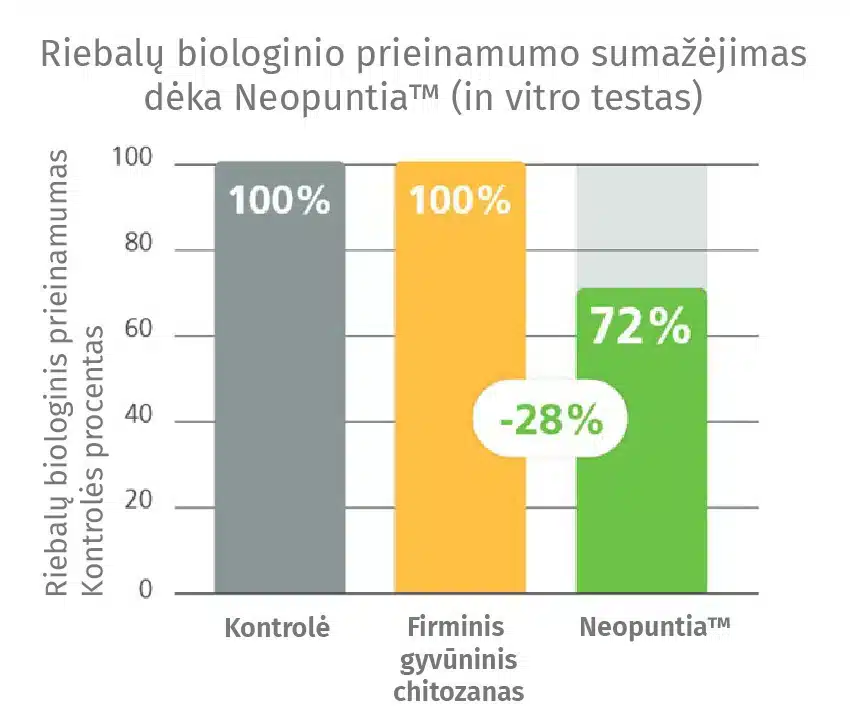 • 28%* suvalgytų riebalų prisijungia prie Neopuntia™ ¹