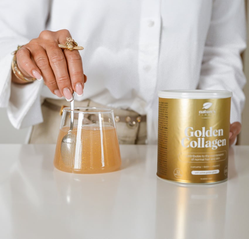 Skirtingai nuo įprastų kolageno papildų, mūsų Golden Collagen ištirpsta į nuostabų auksinį spindesį, paversdamas kasdienį kolageno vartojimą prabangiu ritualu.