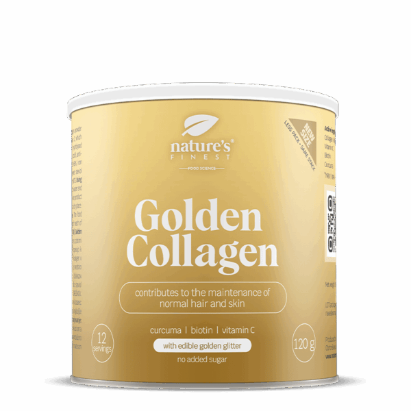 Golden Collagen sujungia hidrolizuotą kolageną ir galingus ingredientus – biotiną, ciberžolę, valgomuosius auksinius blizgučius ir vitaminus, kurie prisideda prie normalaus kolageno susidarymo² ir padeda palaikyti sveiką odą⁴.