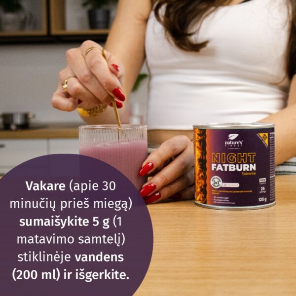 Vakarais (maždaug likus 30 minučių iki miego) sumaišykite 5 g (1 matavimo samtelį) stiklinėje vandens (200 ml) ir išgerkite.
