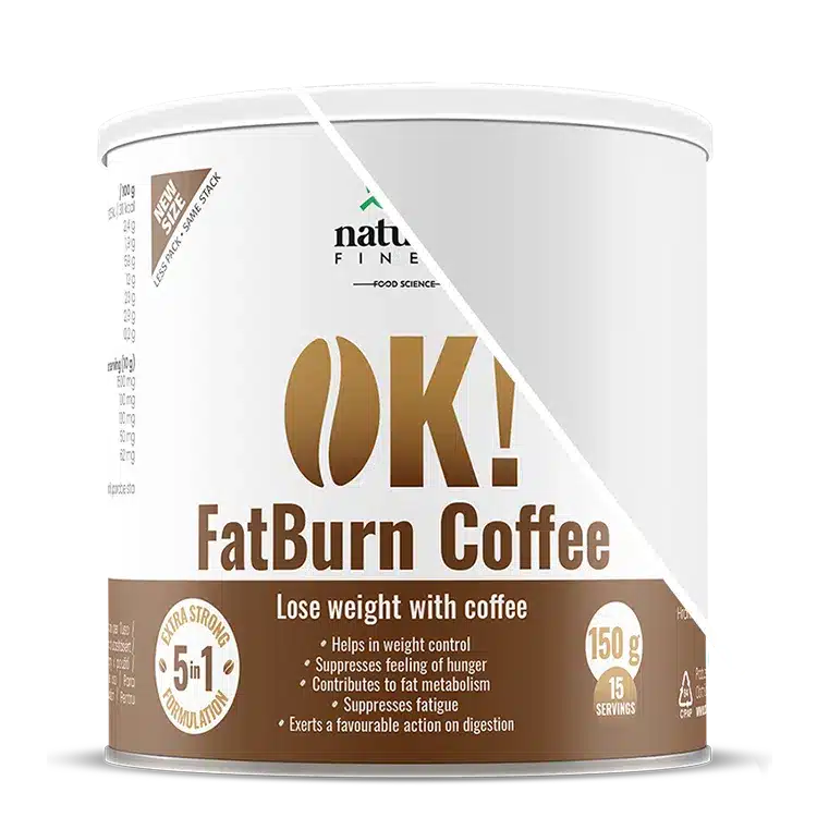 OK!FatBurn Coffee – kavos gėrimas su 5-1 veikimu alkio ir nuovargio mažinimui². Jame yra instant kavos (Coffea arabica L.), kaip įprasta kava, tačiau jis praturtintas galingais aktyviais ingredientais: L-karnitinu (100 mg), guaranos ekstraktu (100 mg) ir žibuoklių ekstraktu (50 mg) vienai dozei.